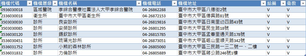大甲區戒菸服務合約醫事機構名單