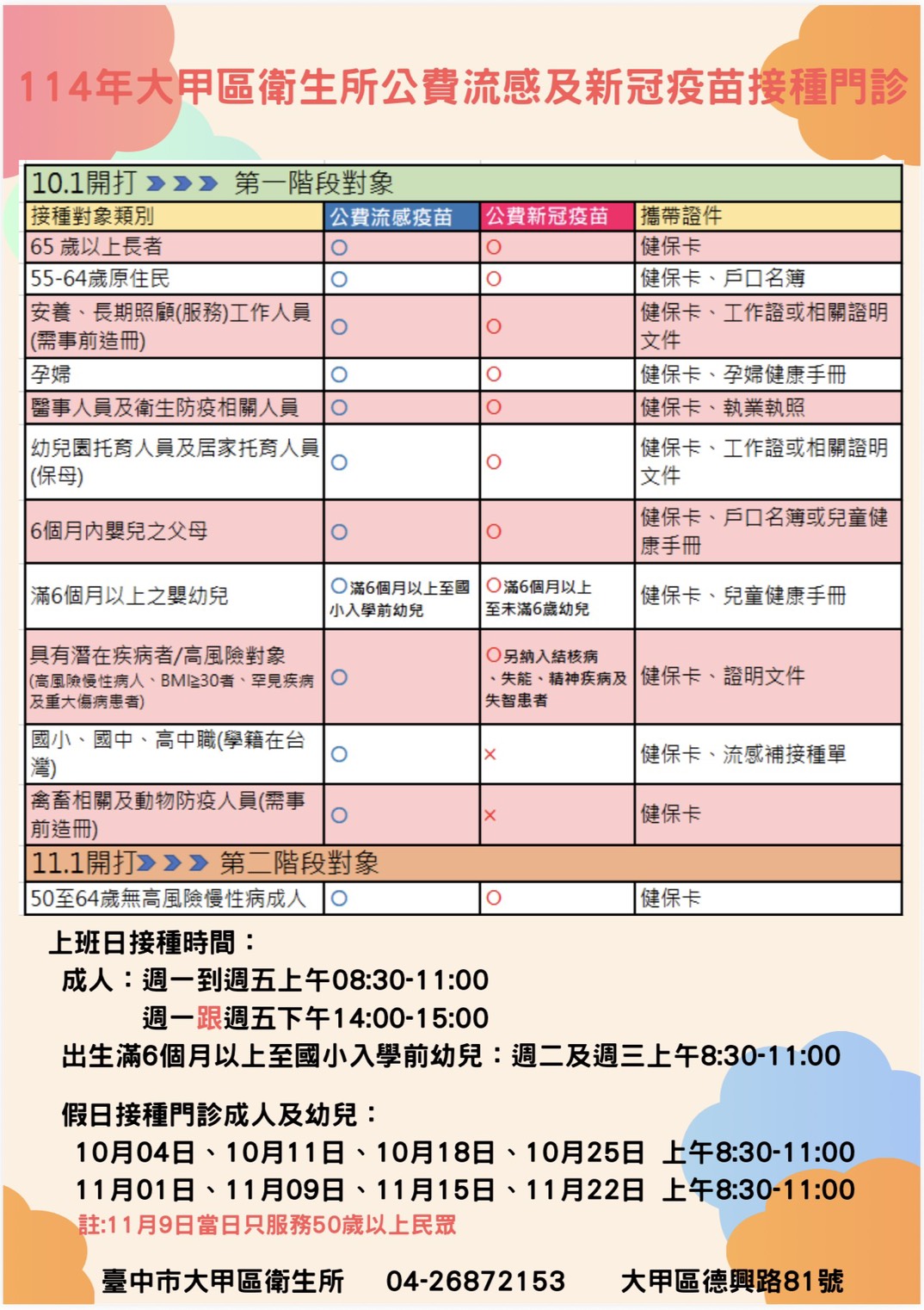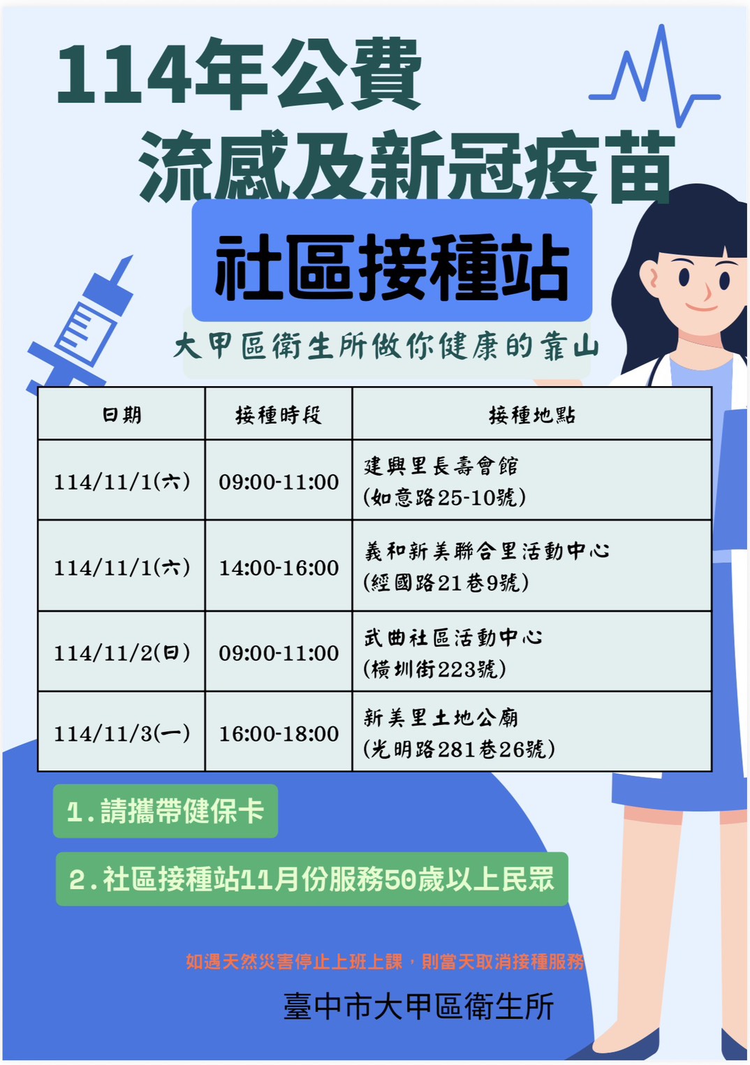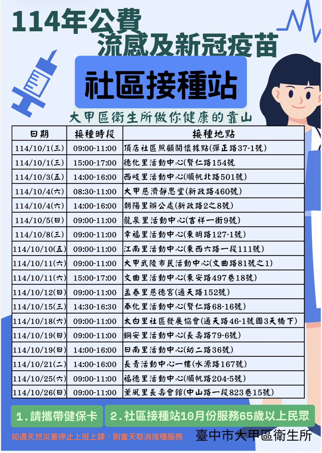 4.大甲區社區接種站相關資訊如附檔並提供台中市流感及新冠疫苗合約院所相關連結。