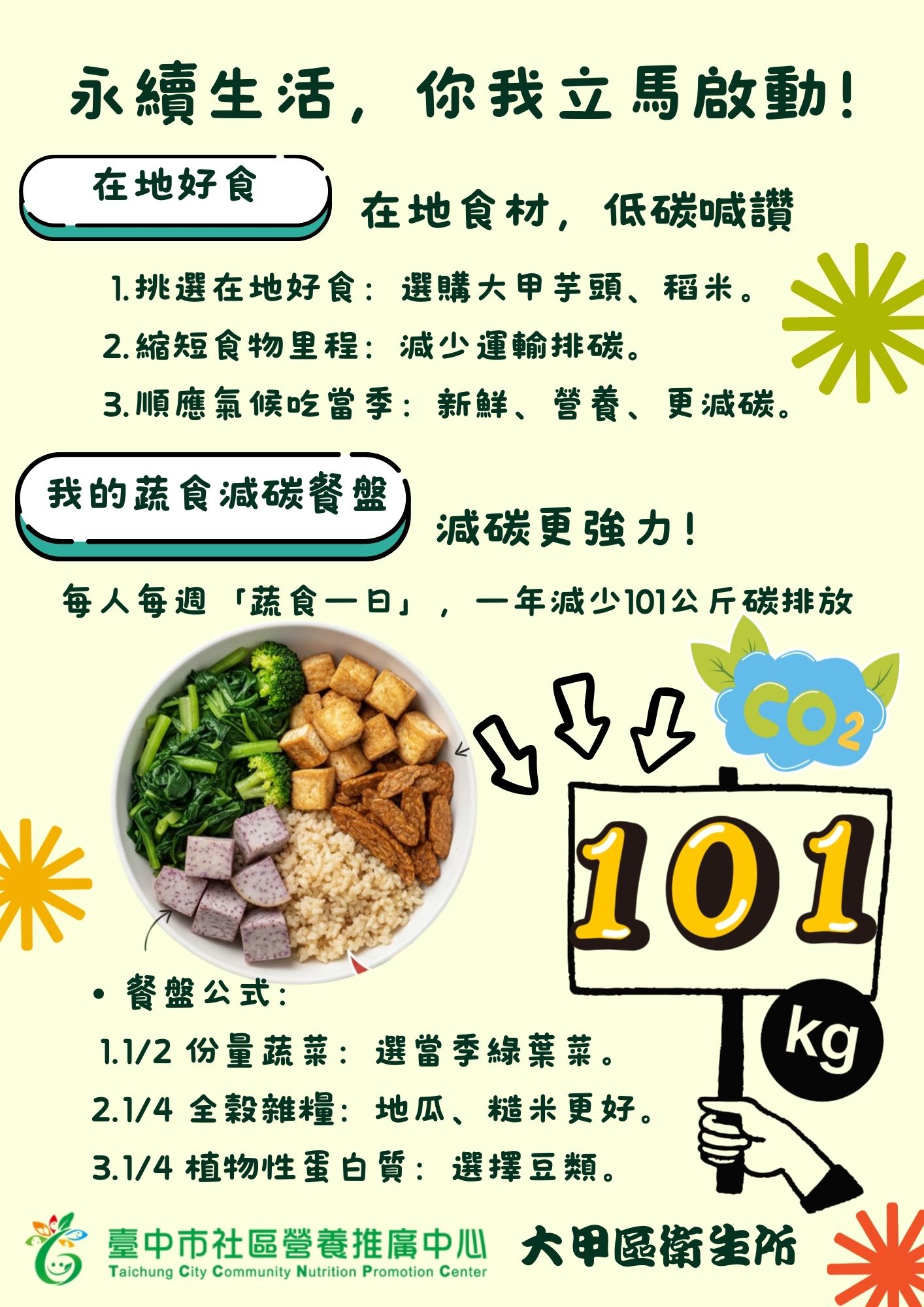 大甲衛生所專屬「低碳飲食」,利用簡單公式讓您健康滿分,環境加分!